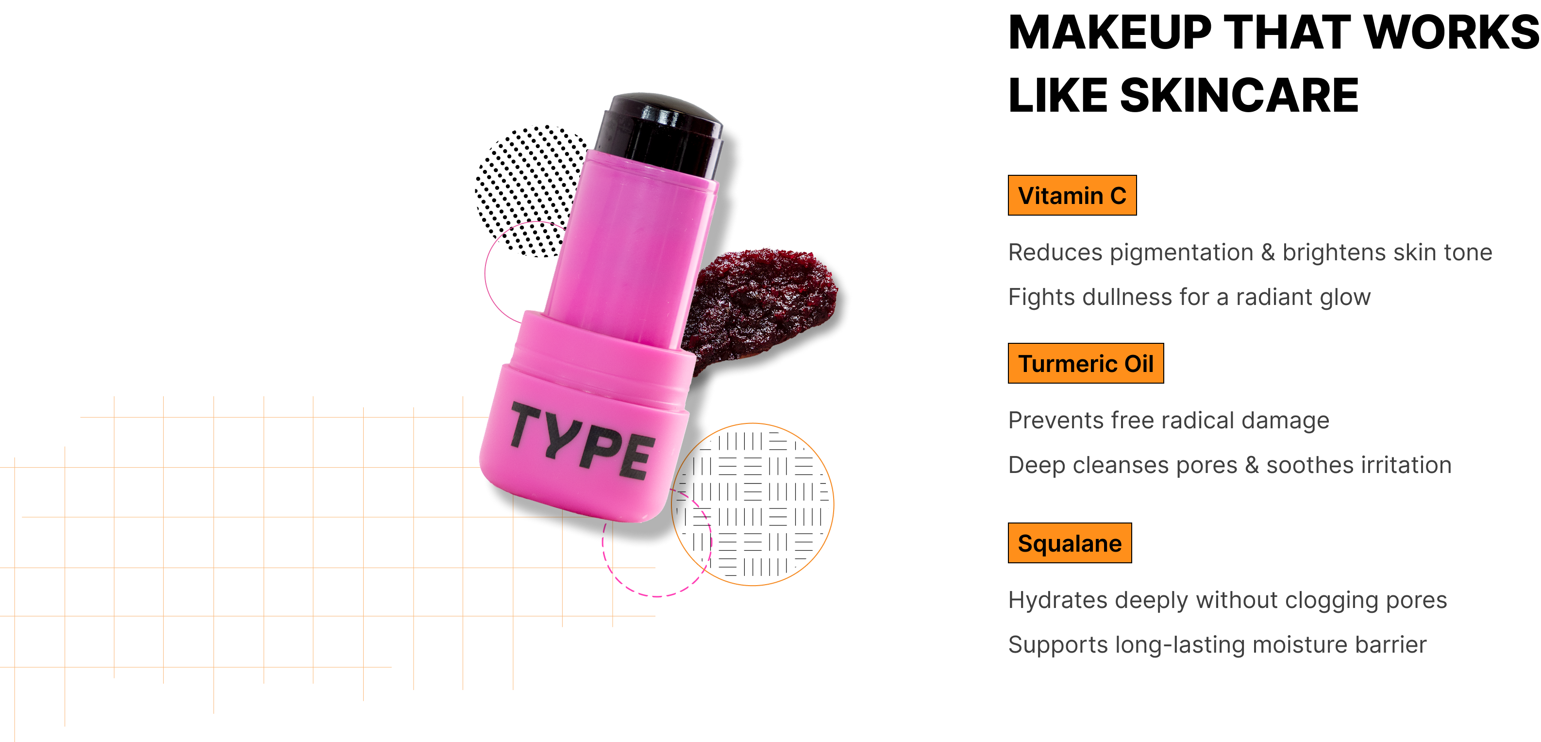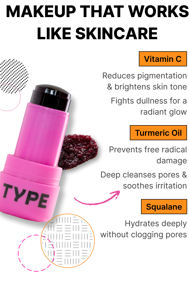 A multitasking makeup stick for eyes, cheeks, and lips that delivers a natural flush of color while treating skin. Enriched with Vitamin C and Turmeric Oil, it helps fade dark spots, fight free radicals, and keep pores clear. One swipe gives sheer pigment—build it up for a bolder look.
