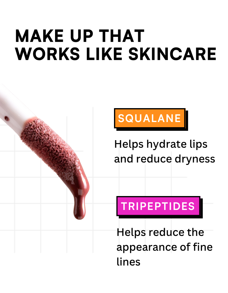 This oil-to-gloss formula glides on smoothly, setting into a non-sticky shine with minimal transfer. Infused with Squalane and Tripeptides, it hydrates, plumps, and protects for effortlessly juicy lips.